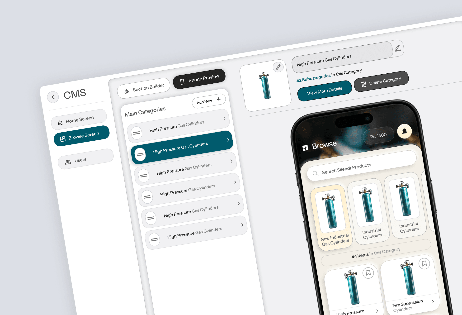 Silendr digitizes the full order and fulfillment journey for India’s B2B gas trading ecosystem. Customers can view product specs, place orders, and track live updates through a mobile app, while the company’s ERP and custom CRM power seamless execution behind the scenes. Each customer segment even receives a personalized home-page experience through an integrated content management system